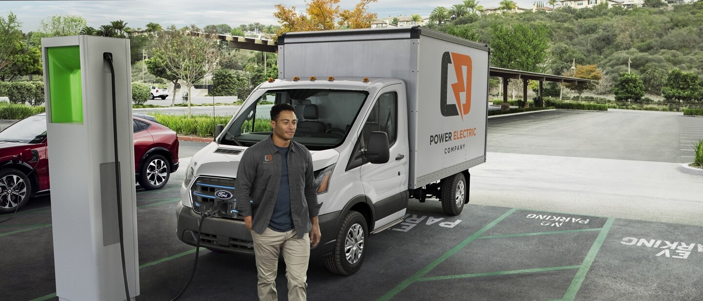 Get the hardware and software to make sure your fleet is connected to go fully electric. Ask the specialists at Ford Pro ™ for on-site charging capability.