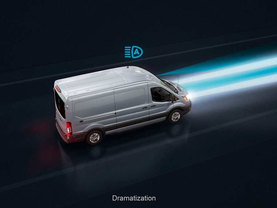 A camera scans the road ahead. If there is no traffic, or it is far away, the high-beams come on automatically10. When the system senses an on-coming vehicle, your headlamps automatically respond by switching to low beam.