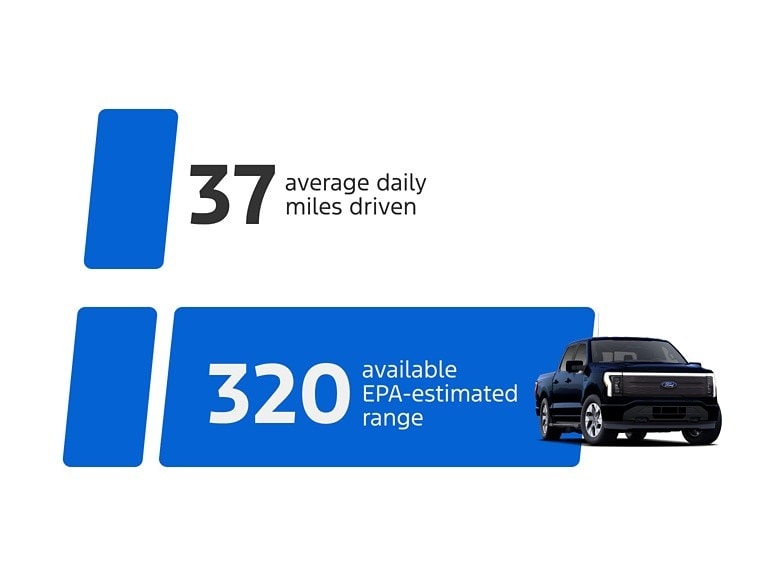 According to a 2021 U.S. Department of Transportation study, theaverage American car owner drives about 37 miles a day. That meansthe EPA-estimated range of 320 miles on FLASH and LARIAT modelswith standard Extended Range Battery'" will power through mostcommutes - and beyond.
