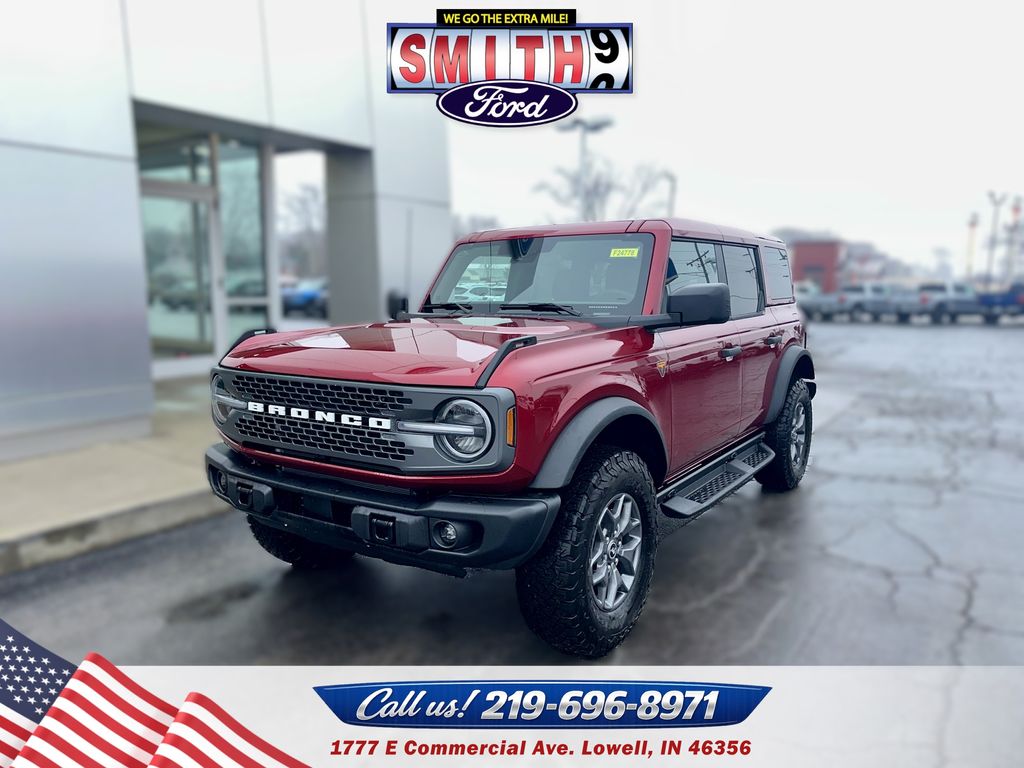 2025 Ford Bronco Badlands, Ford Bronco 4D Sport Utility, Ruby Red Bronco, 2.7L EcoBoost V6 4WD, New Ford Bronco for sale Lowell IN, Ford Dealer Northwest Indiana, Smith Ford of Lowell, Bronco Badlands with Trailer Tow Package, 2025 Bronco Mid Package, Off-road SUV for sale, Ford Bronco with Heated Seats, New Ford SUV Chicagoland Price includes: $2500 - Retail Customer Cash. Exp. 03/31/2026