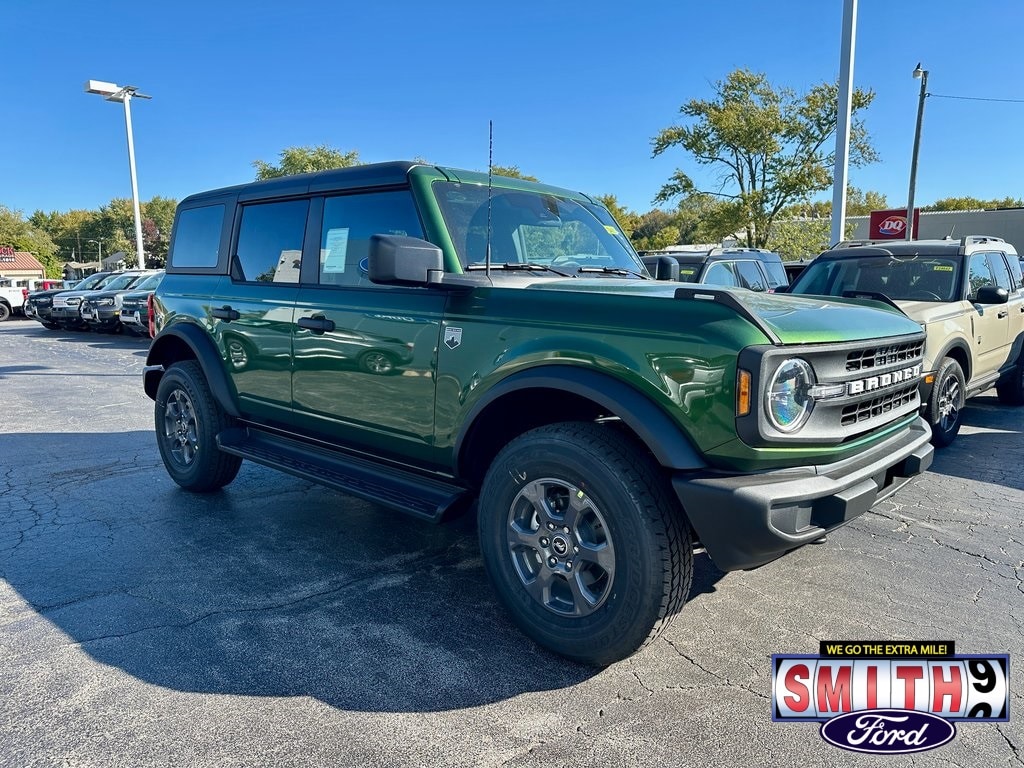 2025 Ford Bronco Big Bend 4D Sport Utility Eruption Green Metallic 4WD 10-Speed Automatic 2.3L EcoBoost I-4 2-Door Intelligent Access w/Lock/Unlock, Ambient Footwell Lighting, Carbonized Gray Molded-In-Color Hard Top, Connected Navigation, Dr & Pass Illuminated Sliding Visor Vanity Mirrors, Dual Smart Charging USB Ports, Dual-Zone Electronic Automatic Temperature Control, Equipment Group 222A Mid Package, Front Row Heated Seats, Power Outlet - Back Side of Center Floor Console, Rear Parking Sensors, Rear-Window Defroster & Washer, Side Step.