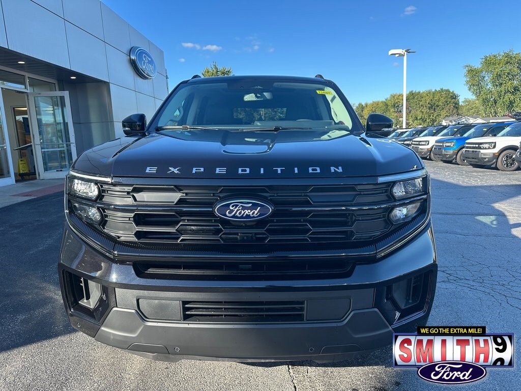 2025 Ford Expedition Max Active 4D Sport Utility Agate Black Metallic 4WD 10-Speed Automatic EcoBoost 3.5L V6 GTDi DOHC 24V Twin Turbocharged 110V/400W AC Power Outlet, 26mm Engine Radiator, 2nd Row Power-Folding Captain's Chairs, 360-Degree Zone Lighting, 3rd Row All-Weather Floor Liner (Tray Style), 3rd Row Flexible Seating, 3rd Row Vinyl Seats, 4-Door Intelligent Access (Lock/Unlock), ABS brakes, Active Cruise Control, ActiveX Front Heated Captain's Chairs, Alloy wheels, BlueCruise Equipped, Compass, Connectivity Package (One-Time Purchase), Electronic Stability Control, Equipment Group 202A High Package, Flex Powered Console, Floor Liners, Front & Second Rows, Ford Split Gate, Front dual zone A/C, Front Side Laminated Glass, Heated door mirrors, Heated Steering Wheel, Heavy-Duty Trailer Tow, Illuminated entry, Integrated Trailer Brake Control, Low tire pressure warning, Memory Driver Seat, Navigation System, Power Panoramic Vista Roof w/Power Sunshade, Power Tilt/Telescopic Steering Wheel w/Memory, Power-Folding Sideview Mirrors w/Autofold, Rain Sensing Wipers, Remote keyless entry, SecuriCode Keyless Entry Keypad, Traction control, Universal Garage Door Opener, USB Ports, Wheels: 20" Carbonized Gray Bright Machined Aluminum, Wireless Charging Pad.