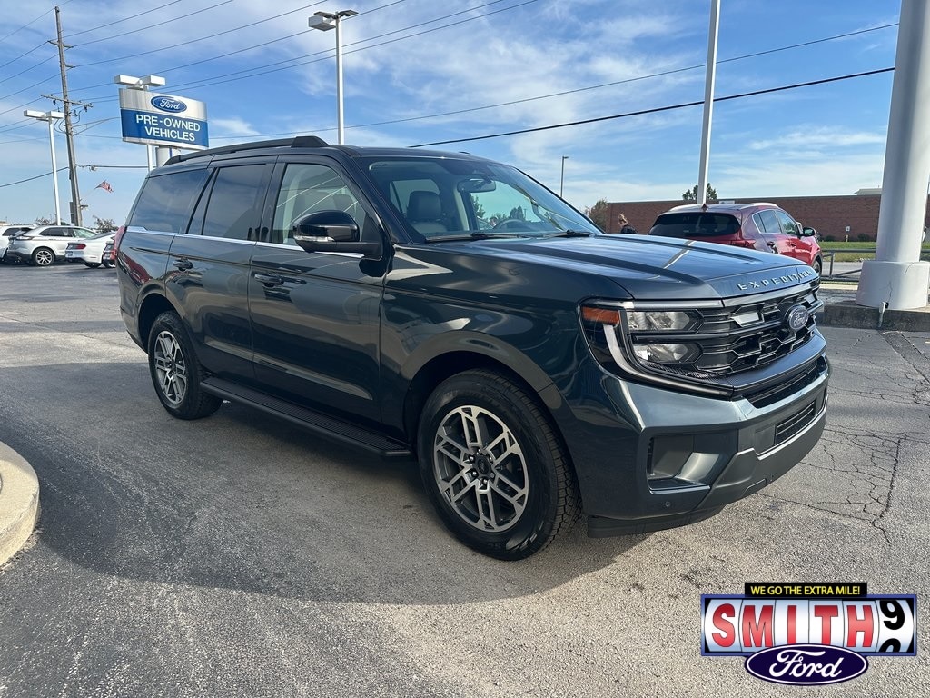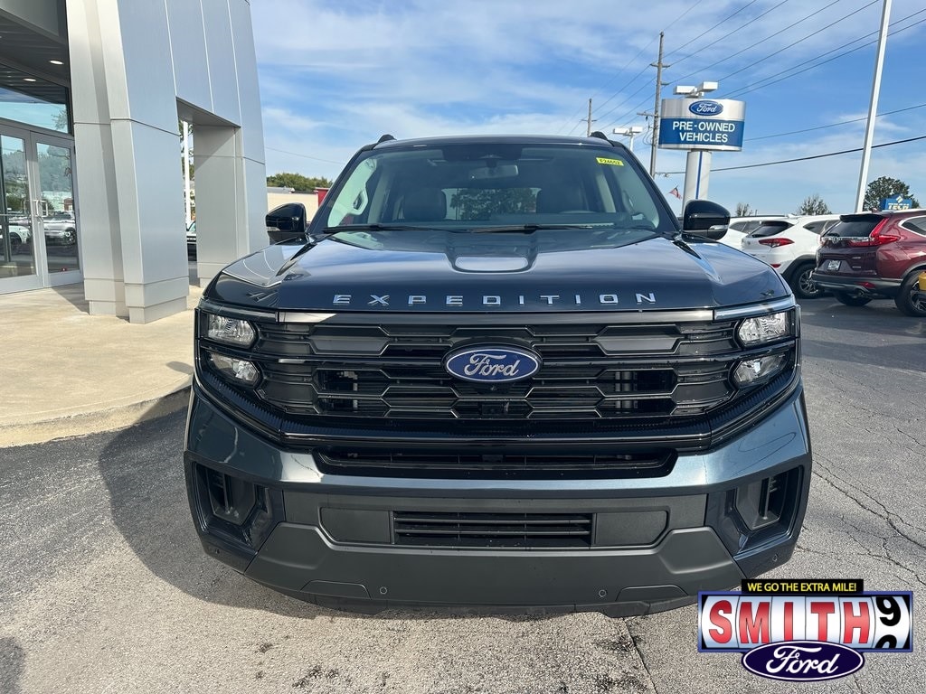 2025 Ford Expedition Active 4D Sport Utility Stone Blue Metallic 4WD 10-Speed Automatic EcoBoost 3.5L V6 GTDi DOHC 24V Twin Turbocharged 110V/400W AC Power Outlet, 26mm Engine Radiator, 2nd Row Power-Folding Captain's Chairs, 360-Degree Zone Lighting, 3rd Row All-Weather Floor Liner (Tray Style), 3rd Row Flexible Seating, 3rd Row Vinyl Seats, 4-Door Intelligent Access (Lock/Unlock), ActiveX Front Heated Captain's Chairs, BlueCruise Equipped, Equipment Group 202A High Package, Flex Powered Console, Floor Liners, Front & Second Rows, Ford Split Gate, Front Side Laminated Glass, Heated Steering Wheel, Heavy-Duty Trailer Tow, Integrated Trailer Brake Control, Memory Driver Seat, Power Panoramic Vista Roof w/Power Sunshade, Power Tilt/Telescopic Steering Wheel w/Memory, Power-Folding Sideview Mirrors w/Autofold, Rain Sensing Wipers, SecuriCode Keyless Entry Pad, Universal Garage Door Opener, USB Ports, Wheels: 20" Carbonized Gray Bright Machined Aluminum, Wireless Charging Pad.