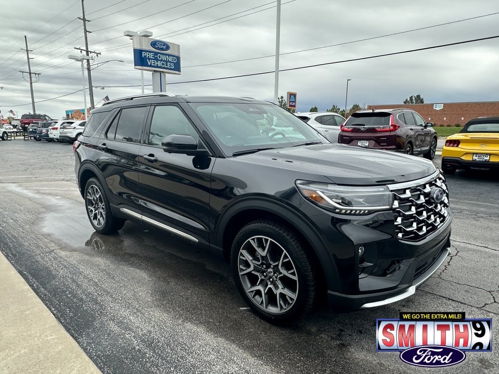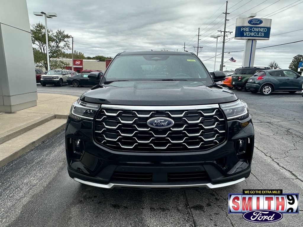 2025 Ford Explorer Platinum 4D Sport Utility Agate Black Metallic 4WD 10-Speed Automatic 3.0L EcoBoost V6 3.31 Non-Limited Slip Rear Axle, 3rd Rw All-Wthr Flr Liners w/2nd Rw Cap Chairs, Equipment Group 600A Ultimate Package, Front & 2nd Rows Floor Liners w/Carpet Floor Mats, Heated front seats, Heated rear seats, Leather Seating Surfaces Sport Captain Chairs, Lux Leather Package, Platinum Badges on Front Row Seats, Power moonroof, Quilting & Stitching on Door Panels, Quilting & Stitching on Seats, Ultimate Package, Ventilated front seats, Wheels: 21" Dark Alloy-Painted Machined Aluminum.