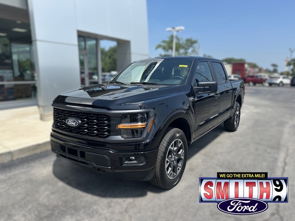 Priced below KBB Fair Purchase Price! 2025 Ford F-150 STX 4D SuperCrew Agate Black Metallic 4WD 10-Speed Automatic 2.7L V6 EcoBoost Equipment Group 200A Mid, LED Fog Lamps w/LED Cornering Lamp, Retractable Rear Center Step, Wheels: 20" Dark Gray w/Machined Aluminum.