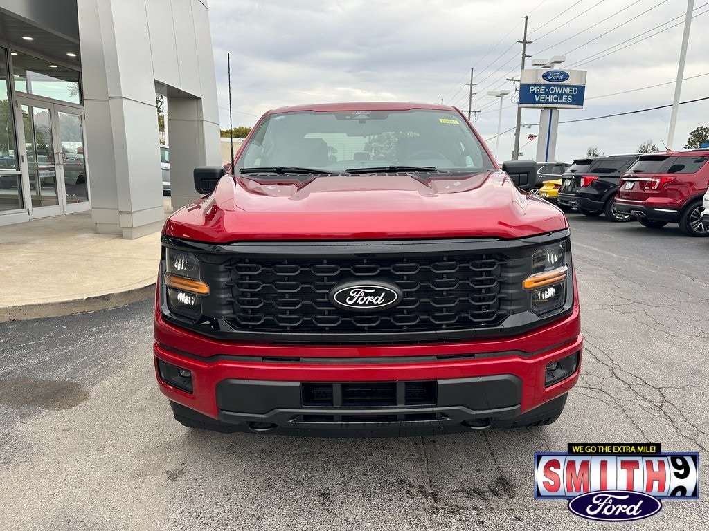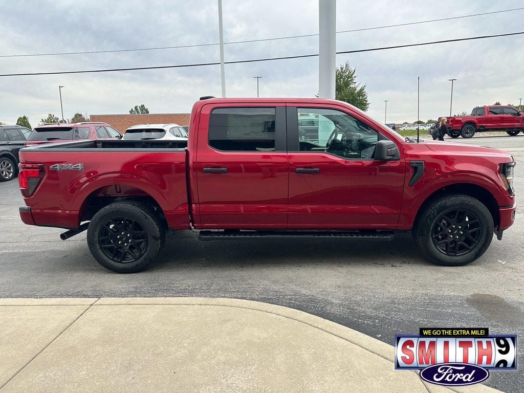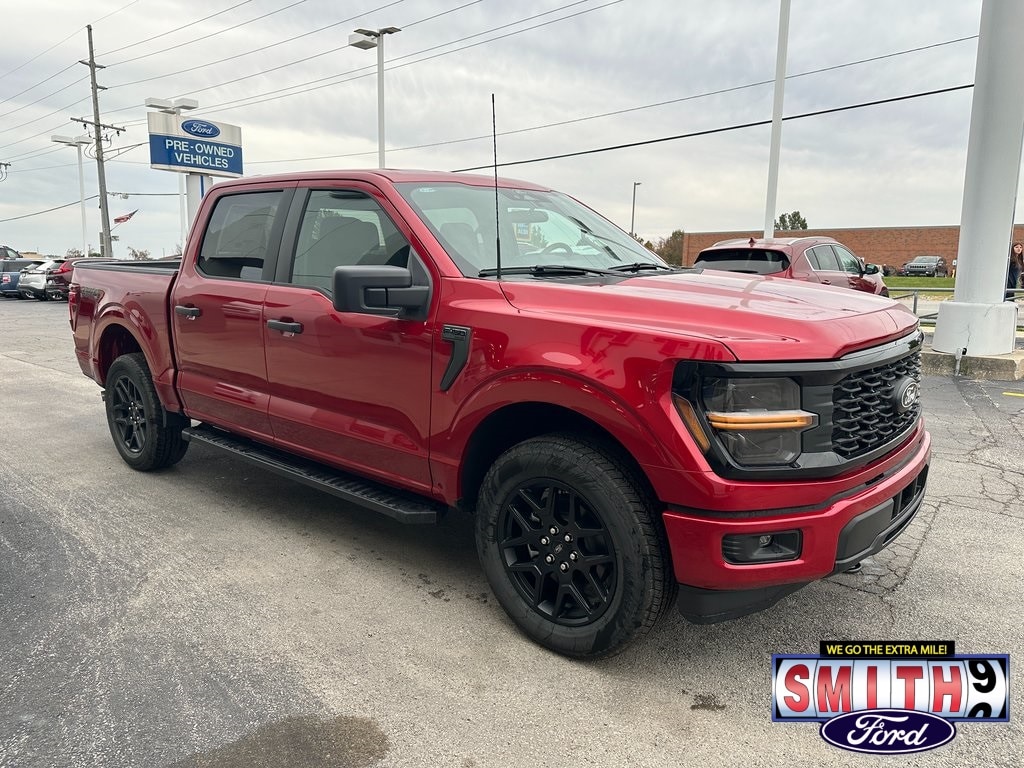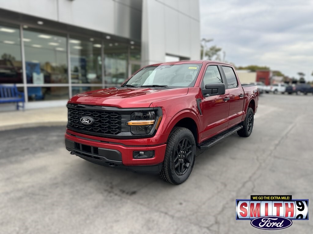 2025 Ford F-150 STX 4D SuperCrew Rapid Red Metallic Tinted Clearcoat 4WD 10-Speed Automatic 2.7L V6 EcoBoost 6" Black Running Boards, Black Exterior Badging, Black Tailgate Decal, Gray Box Side Decal, STX Black Appearance Package, Tough Bed Spray-In Bedliner, Unique Sport Cloth 40/Console/40 Front-Seats, Wheels: 20" Gloss Black.