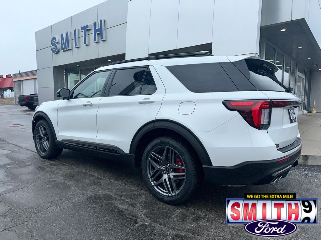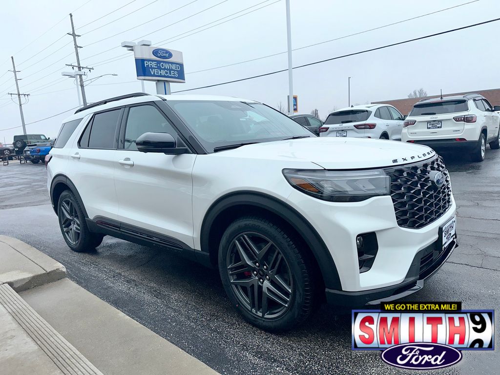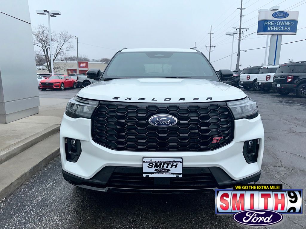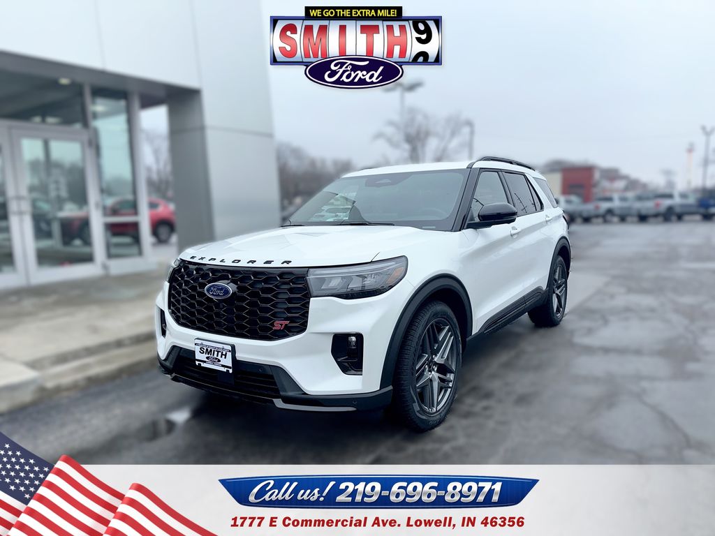 2026 Ford Explorer ST 4D Sport Utility Star White Metallic Tri-Coat 4WD 10-Speed Automatic 3.0L EcoBoost V6 Heated/Ventilated Miko Suede Captain's Chairs, Multicontour Seats with Front Active Motion, Panoramic Fixed Glass Roof with Power Shade, Radio: B&O Sound System by Bang & Olufsen, Remote Control Front Windows, SecuriCode Keyless Entry Keypad, Sun and Sound Package.