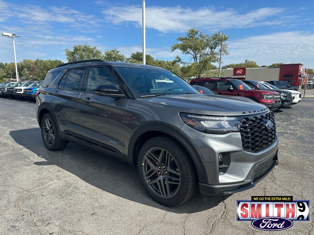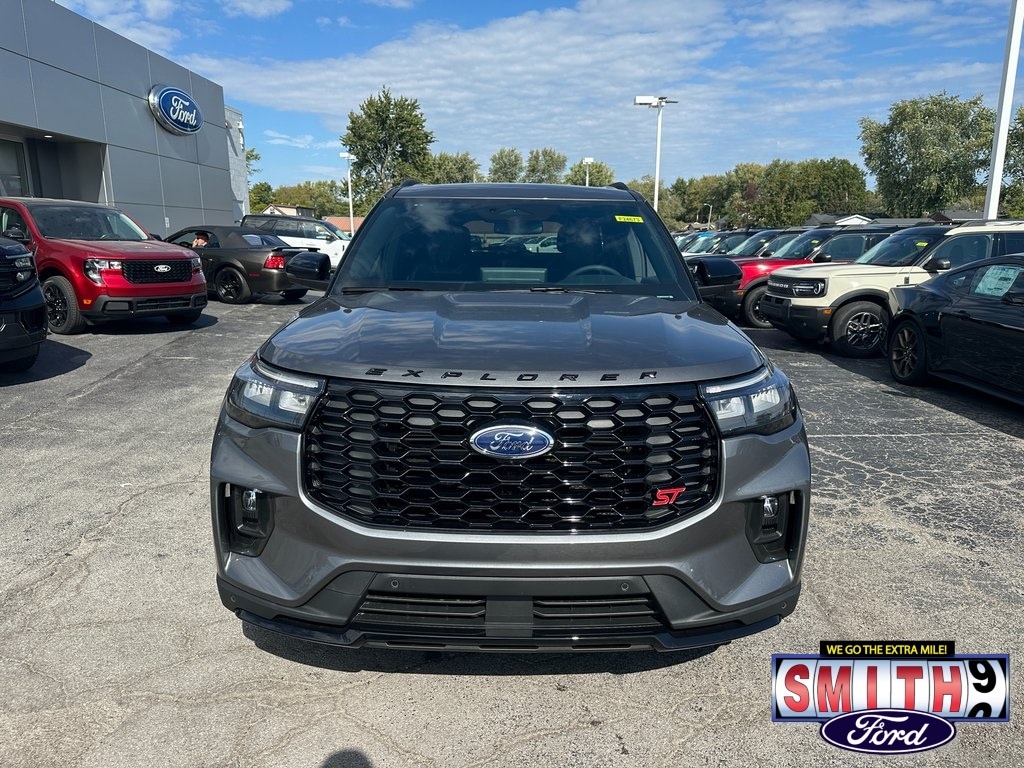 2026 Ford Explorer ST 4D Sport Utility Carbonized Gray Metallic 4WD 10-Speed Automatic 3.0L EcoBoost V6 3rd Rw All-Wthr Flr Liners w/2nd Rw Bench Seats, Front & 2nd Rows Floor Liners w/Carpet Floor Mats, Heated front seats, Heated rear seats, Multicontour Seats w/Front Active Motion, Panoramic Fixed Glass Roof w/Power Shade, Radio: B&O Sound System by Bang & Olufsen w/51G, Remote Control Front Windows, SecuriCode Keyless Entry Keypad, Sun and Sound Package, Ventilated front seats.