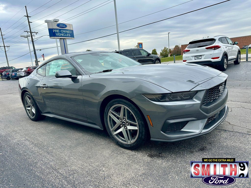 2026 Ford Mustang EcoBoost RWD, Carbonized Gray Metallic Coupe, 19-Inch Polished Wheels, Opacity Fade Stripe, 32 MPG Highway Sports Car, SYNC 4, Priced Below KBB, Smith Ford Lowell. Price includes: $1000 - Retail Customer Cash. Exp. 03/31/2026