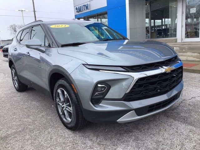 This 2024 Chevrolet Blazer LT in sleek Sterling Metallic is a modern and sophisticated front-wheel-drive SUV that remains Under Factory Warranty. Powered by a responsive 2.0L Turbocharged engine and a smooth 9-speed automatic transmission, this Blazer delivers an efficient 22/29 City/Highway MPG, making it a perfect choice for both daily Hammond commutes and weekend getaways across Chicagoland.The interior is a sanctuary of comfort and technology, featuring the Convenience Package and Preferred Equipment Group 2LT. Youâll stay warm with Heated Driver and Front Passenger Seats and maintain the perfect cabin climate with dual-zone automatic temperature control. Staying connected is effortless with the Chevrolet Infotainment 3 Plus System, which includes Apple CarPlay & Android Auto, Wireless Charging, and SiriusXM w/360L. For added convenience, this SUV is equipped with a rear power programmable liftgate, Remote Start, and a universal home remote.Safety is at the forefront with the Driver Confidence Package. This Blazer is loaded with advanced driver-assist features, including Adaptive Cruise Control, Blind Spot Monitor, Lane Departure Warning, and Rear Cross Traffic Alert. Additional tech like Lane Change Alert with Side Blind Zone Alert, Rear Park Assist with audible warning, and Enhanced Automatic Emergency Braking provide total peace of mind. Riding on 18 Grazen Metallic aluminum wheels with black roof-mounted side rails, this 2024 Blazer LT offers a bold presence and a refined driving experience.Smith Chevrolet of Hammond: The Trusted New & Used Chevy Dealer since 1922. Find the Lowest Prices in the Region, guaranteed! Enjoy Hassle-Free Financing for Any Credit Situation. Serving Northwest Indiana and Chicagoland with Integrity and Trust. We proudly serve Hammond, Chicago, Highland, Lansing, Gary, and Merrillville. Come experience the difference!2024 Chevrolet Blazer LT, Chevy Blazer Sterling Metallic, used Chevy Blazer Hammond, Blazer under factory warranty, Smith Chevrolet of Hammond, fuel efficient SUV, used SUVs Northwest Indiana, Blazer 2.0L Turbo, Apple CarPlay Chevy Blazer, 2024 Blazer remote start