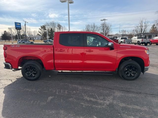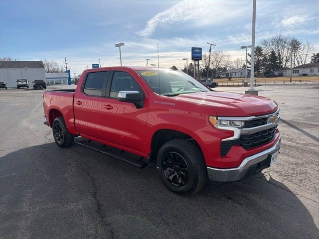 Turn heads and take command of the road in this Red Hot 2025 Chevrolet Silverado 1500 LT. Powered by the legendary EcoTec3 5.3L V8 engine and paired with a smooth 10-speed automatic transmission, this 4WD Crew Cab is built to handle everything from the job site to the weekend getaway. With a Clean CARFAX and One-Owner history, this truck arrives with incredibly low mileage 585 miles below market average ensuring you get a like-new pickup at an unbeatable value.