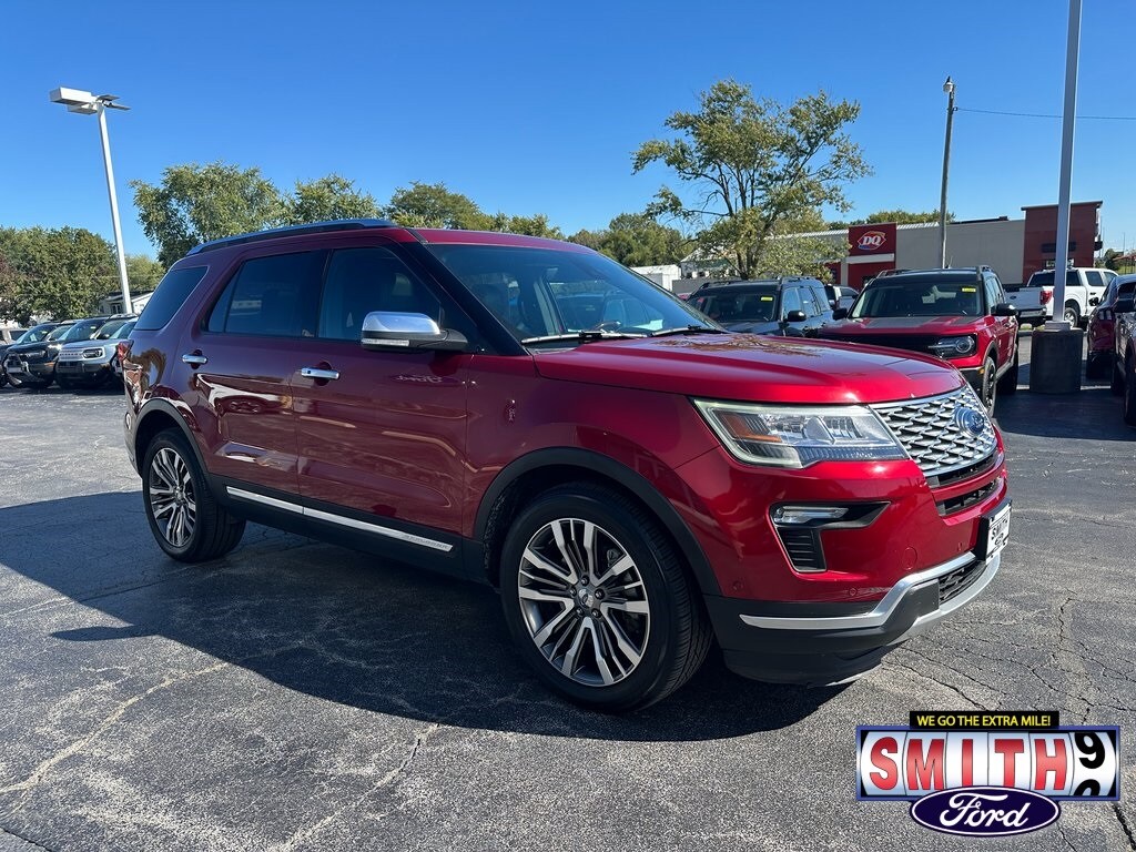 Clean CARFAX. Ruby Red Metallic Tinted Clearcoat 2018 Ford Explorer Platinum 4D Sport Utility 4WD 6-Speed Automatic with Select-Shift 3.5L V6