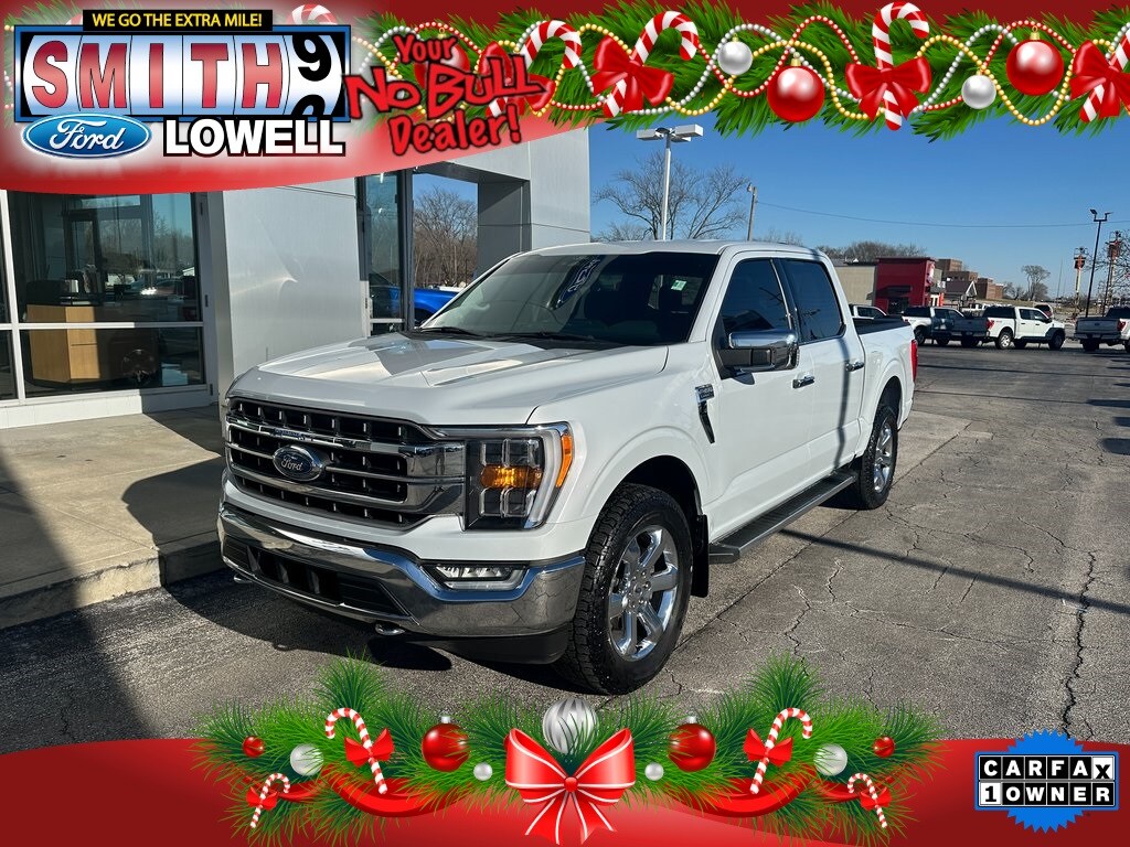 2022 Ford F-150 Lariat, Space White Metallic F-150, 3.5L EcoBoost, used Ford F-150 Lowell, Ford F-150 Lariat 501A, 4x4 trucks for sale Northwest Indiana, one owner F-150, Smith Ford of Lowell, used trucks Merrillville, Ford F-150 Chrome Package