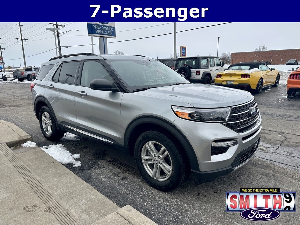 Upgrade your family's ride with this outstanding, like-new 2023 Ford Explorer XLT 4WD! Finished in striking Iconic Silver Metallic, this is the highly sought-after three-row SUV, complete with a clean CARFAX One-Owner Vehicle History. Perfect for handling Northwest Indiana's diverse weather and road conditions, this Explorer combines the efficiency of the 2.3L EcoBoost I-4 engine with the confidence of 4WD capability.