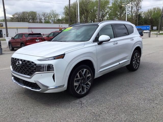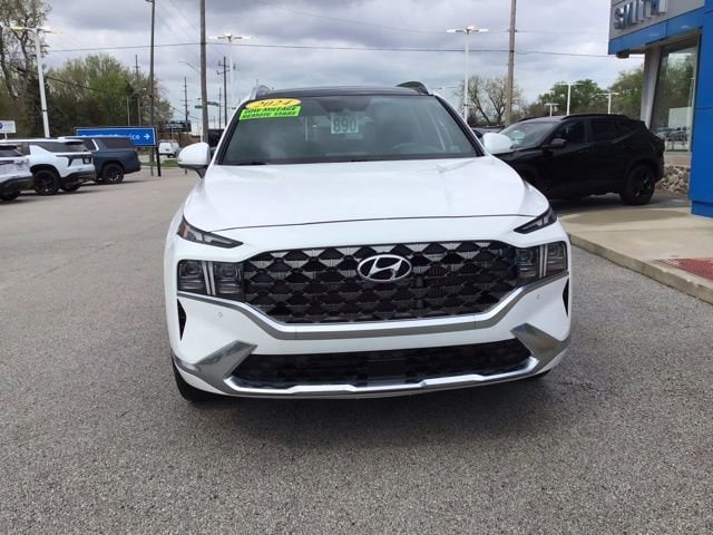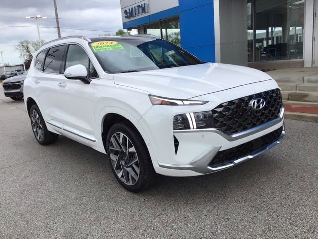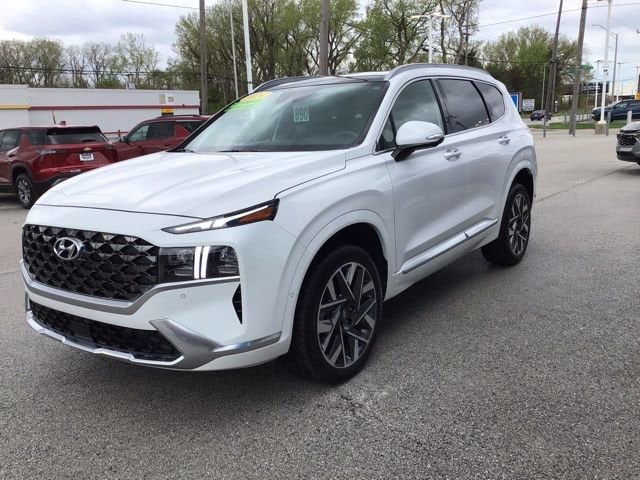 CARFAX One-Owner. Clean CARFAX. 21/28 City/Highway MPG Under Factory Warranty!!, Low low Miles!, ALL WHEEL DRIVE, **PANORAMIC SUNROOF**, --NAVIGATION SYSTEM--, Heated Leather Seats, Ventilated Seats, Remote Start, Backup Camera, Blind Spot Monitor, *BLUETOOTH, HANDS-FREE*, Apple CarPlay & Android Auto, Cross Traffic Alert, Cruise Control, Heated Steering Wheel, Keyless Start, Lane Departure Warning, Memory Seat, Premium Audio, Steering Wheel Controls, Apple CarPlay & Android Auto, Automatic temperature control, Exterior Parking Camera Rear, Front dual zone A/C, Heated & Ventilated Front Bucket Seats, Heated door mirrors, Heated rear seats, Heated steering wheel, Leather steering wheel, Memory seat, Navigation System, Power door mirrors, Power driver seat, Power Liftgate, Power moonroof, Power passenger seat, Quilted Premium Nappa Leather Seat Trim, Radio: AM/FM Harman Kardon Display Audio, Remote keyless entry, Split folding rear seat, Steering wheel mounted audio controls, Wheels: 20 x 8.0J Alloy. 2023 Hyundai AWD White Santa Fe Calligraphy 2.5L I4 Shiftronic 4D Sport Utility