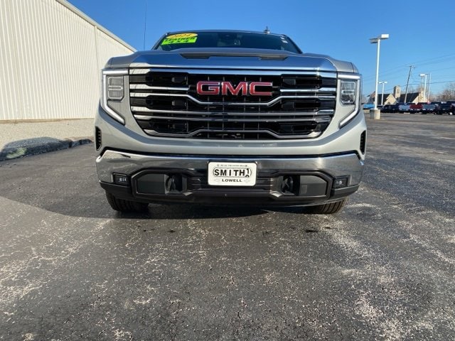 2024 GMC Sierra 1500 SLT, Sterling Metallic Sierra, 4WD Crew Cab V8, CarBravo Certified GMC, Used Sierra 1500 Lowell, Smith Chevrolet of Lowell, GMC Sierra SLT For Sale, Northwest Indiana GMC Dealer, 5.3L V8 Sierra, Low Mileage Used Trucks, GMC Trailering Package